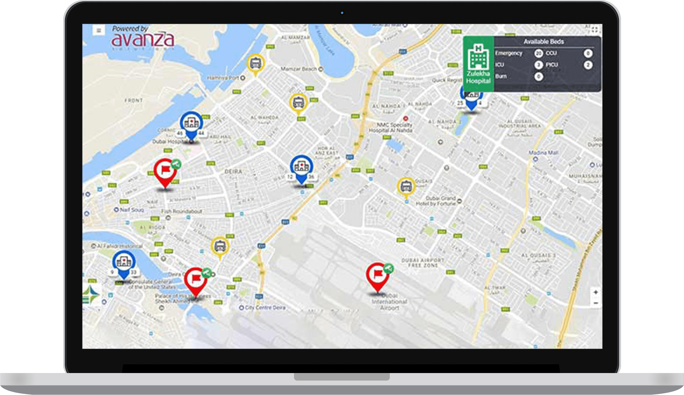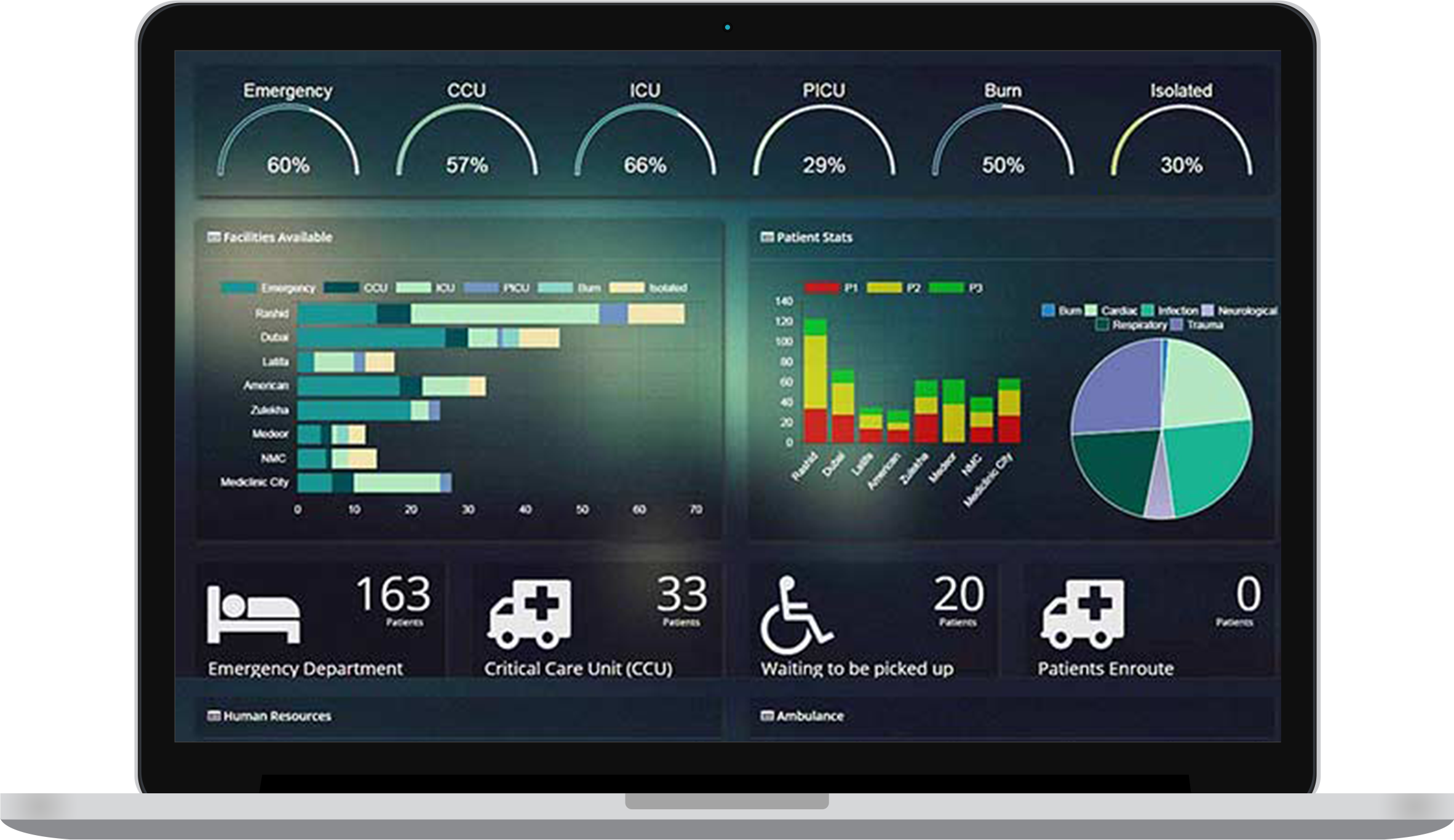Real-time visibility of city-wide incidents, equipment availability across healthcare facilities, patient cases in each hospital, ambulance tracking, cases in each ambulance, details of major incidents, patient and bed details, and a lot more. Retrieve real-time data from hospitals by integrating with ERP systems or specific hospital systems and filtering and harmonizing the data thus procured.
